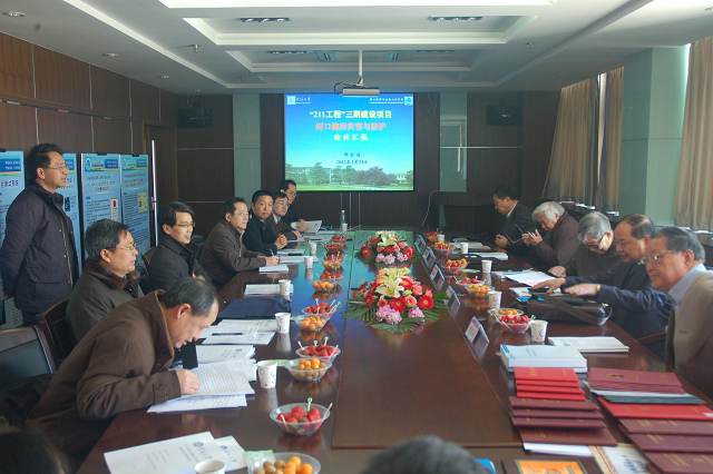 会上,郑金海院长向与会专家详细汇报了学院“211工程”三期建设项目“河口海岸灾害与防护”在学科建设、队伍建设、科学研究、创新人才培养、国内外学术交流与合作等方面的建设目标和任务完成情况、资金使用管理情况、主要建设成效、标志性成果、项目管理等方面的汇报。通过“十一五”“211工程”三期建设,SEX8 在学科建设方面取得重大进展,形成了解决河口海岸水沙灾害重大科学问题和减灾工程关键难题的创新研究综合能力,新增“海岸带资源开发与安全”江苏高校优势学科建设工程项目和“海岸带滩涂资源开发与安全”教育部高等学校学科创新引智计划项目;师资队伍整体水平有了显著提高,形成了一支学历层次高、年轻化、结构合理的高素质学科梯队;承担了一批国家层面和国际合作研究项目,取得了一批具有重要工程应用价值的创新成果和发明专利,对于长江口治理开发、珠江三角洲航道网建设、港珠澳大桥、江苏沿海滩涂围垦、广西北部湾港口等重大工程起到了重要作用。部分成果达到国际领先水平,获得国家科技进步二等奖1项和部省级科技进步奖23项,科研能力明显提升,产生了显著的社会和经济效益;在人才培养中取得了较大的规模和质量效益,在国内同类学科中名列前茅,获得了行业用人单位的广泛好评;自主研发了滨海多功能海洋水文观测集成系统、环形水槽及其测控系统,购置了一批先进的仪器设备,现场观测与实验室建设又上新台阶,为该学科科学研究和高层次人才培养提供了先进的实验条件和有力的技术保障。