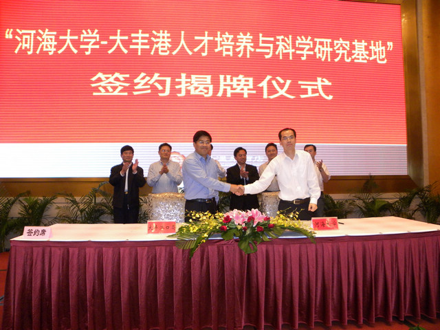 参加签字仪式的有大丰港经济区管委会主任倪向荣、盐城市港口局局长朱新龙,副局长诸裕良、赵飞,大丰市港口局局长褚国栋,副局长葛曙光、施晓钟等。会议由葛曙光副局长主持,倪向荣主任、朱新龙局长、郑金海院长就双方前期的合作及以后的全面合作关系分别做了重要讲话。随后由郑金海院长、褚国栋局长代表双方签订合作协议书,朱宏亮书记、倪向荣主任代表双方揭牌。