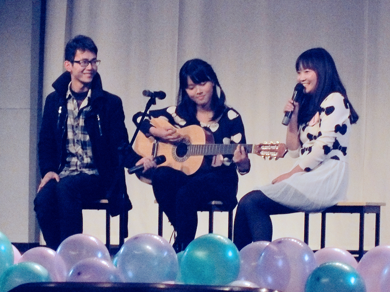 经过两轮激烈的角逐,8号选手邓康平,6号周浩男,10号张东阳,陈腾纯组合分别获得冠军、亚军、季军。同时,周浩男同学还获得了人气王的奖项!最后去年十佳人气王宁珏同学为晚会献唱,现场气氛再次达到高潮。