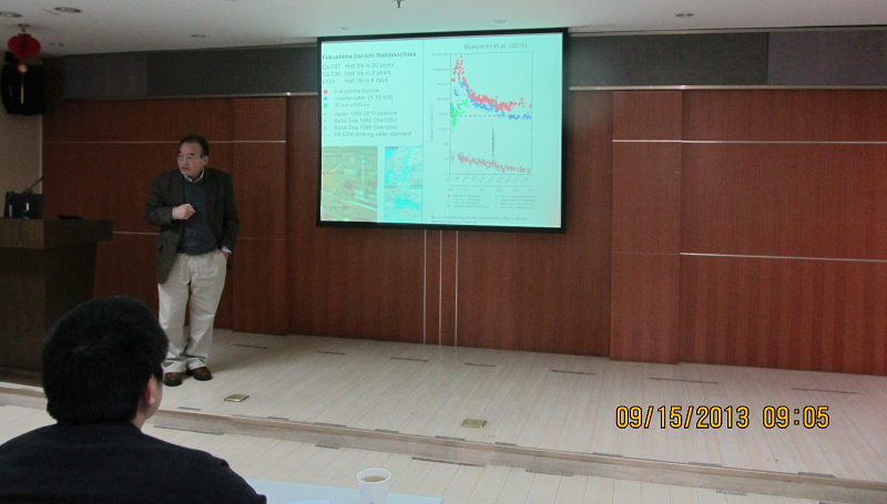 报告期间,作为2011年美国自然基金会对日本海啸与核扩散事故评估和预测的快速应急项目美日联合研究团队的首席科学家之一,陈长胜教授讲述了他在接到任务之后,如何结合物理海洋动力学模式与地震模式等成功地对日本海啸及核辐射的影响作了科学评估。