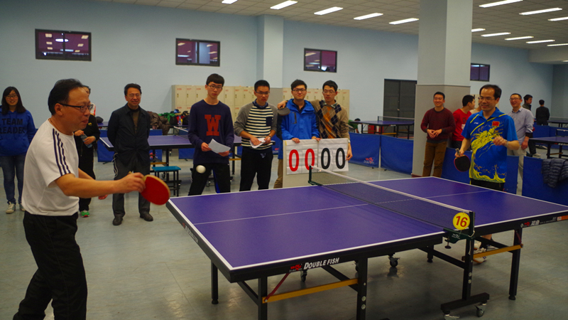 下午四时,老师与同学们相约体育馆,活动在14级辅导员季超老师的主持下展开。此次乒乓球赛共分为两轮,第一轮为热身赛,第二轮为小组赛。在第一轮热身赛中,由老师与同学们以轮战的形式进行比拼,而场下观众纷纷为自己支持的参赛者加油助威。第二轮把参赛成员分为两个小组,分别为忠华组和金海组,每组由师生共同组成。队长分别为胡忠华书记和郑金海院长。在第一轮比赛后,场内的观众也开始竞猜比赛结果,支持哪一队则把自己宝贵的一票投到代表那一队的箱子里。第二轮比赛一开始,赛场上就变得热火朝天,老师和同学们纷纷使出浑身解数,争取为自己的组取得好成绩,而现场的观战者分化为两支队伍相互呐喊较劲。激动人心的第二轮比赛以3:3战平,为了决出胜方,在观众的呼声中,由郑金海院长与胡忠华书记分别代表两支队伍进行了加时赛,比赛最终以忠华队获胜告终。活动最后,胡忠华书记和郑金海院长抽取了十五名幸运观众,他们如愿以偿地获得了开幕式入场券。
