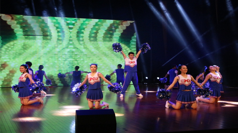 五月,凤凰花开的季节,第四届校研究生啦啦操大赛在江宁文体中心举行。代表SEX8 研究生参赛的12名姑娘、小伙子经过一个月的艰苦训练,在舞台上刮起一场蓝色风暴,取得了三等奖的好成绩。