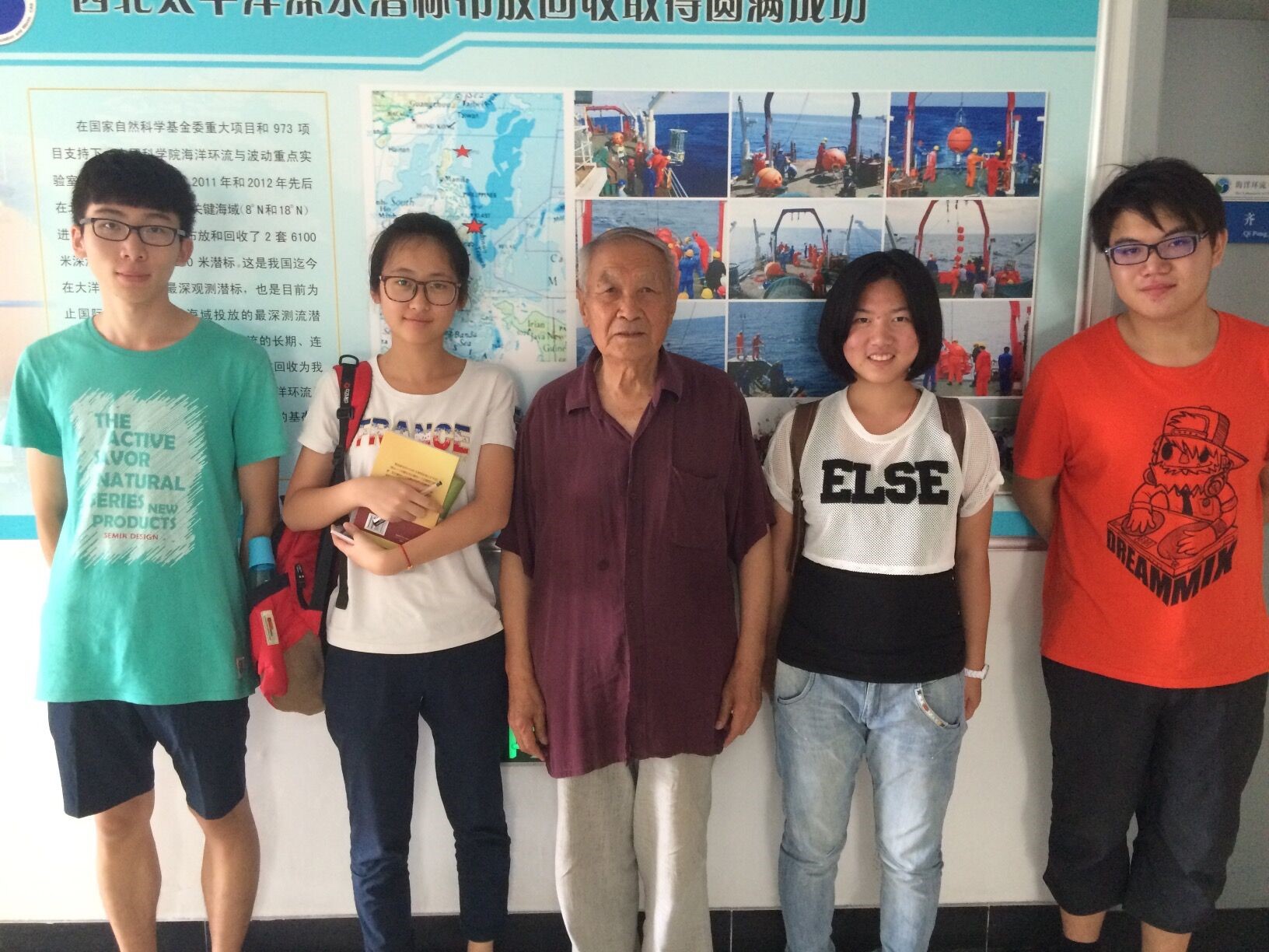 在尹教授的安排下,队员们采访了他的老师——知名物理海洋学家王涛老先生。已年过八十的王涛老先生亲切地与大家分享了他对物理海洋学的认识,以及他当年信谏李先念、与严恺老校长辩论、参与建设石臼港的工作经历。最后老先生还与大家分享了他对人生价值、命运与机遇的认识,提出了对未来海洋科学发展的期待,队员们深感受益。