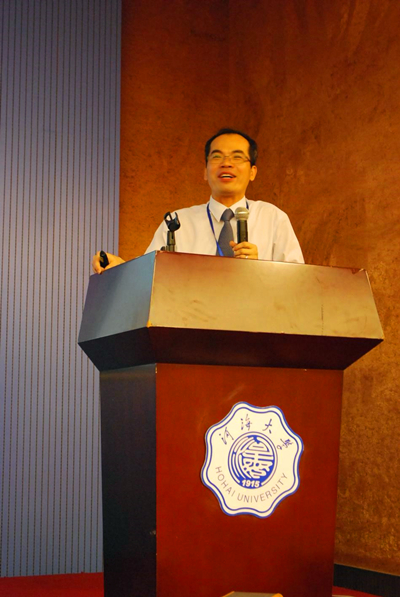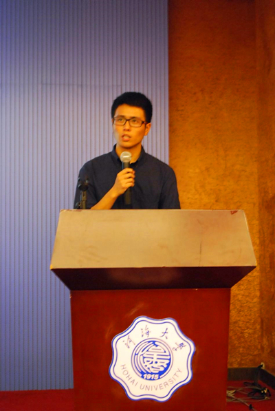 及港航院的历史沿革,他用生动的故事再现了河海的百年辉煌,描绘了学院美好的发展前景。教师代表马志国老师用亲切平实的语言为新生们寄语,希望他们作为河海百年新一届的学生勤奋刻苦,弘扬“献身,负责,求实”的水利精神。2012级优秀学生张辉宇同学代表高年级学生发言,他用自己的经历鼓励学弟学妹们好好规划大学四年的时间。新生代表王聪同学的发言更是激励同学们奋斗青春,不留遗憾,做一名优秀的港航人。