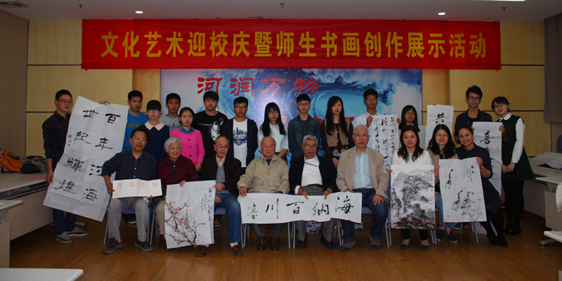 在开始的座谈会中,几位退休教师与大家分享了练习书法的经验,畅谈书法的益处,并向同学们传授学习书法的技巧。他们深入简出地道出书法与做人的道理,带给同学们丰富的人生智慧。同时,退休教师们也与大家分享了记忆中的河海,共同祝愿学校百年华诞。