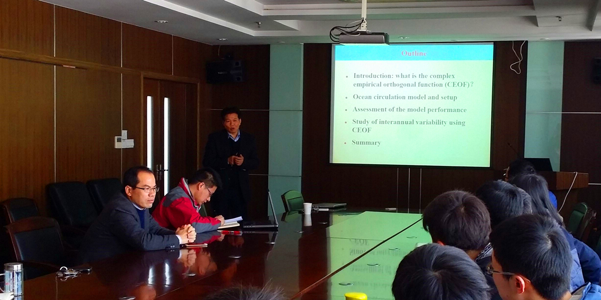 On the morning of March 16, Prof. Jinyu Sheng from Dalhousie University, Canada gave a seminar titled “Study of Interannual Variability of Temperature and Salinity Using CEOF”. The seminar was hosted by Prof. Jinhai Zheng. Taking the 17-year model results of the Eastern Canadian Shelf as an example, Prof. Sheng gave detailed explanation of CEOF method and its application in examining the interannual variability of circulation and hydrography.