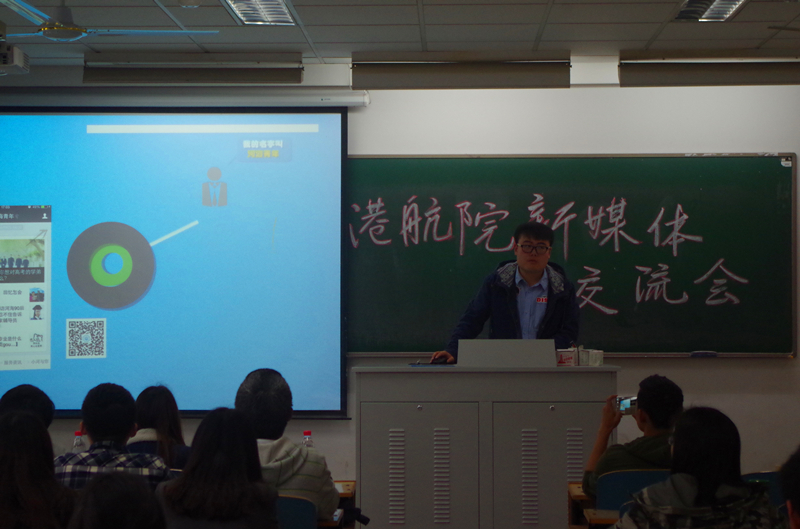 4月27日16:00,由港航院传媒中心举办的新媒体宣传交流会在致用221教室举行。此次交流会,邀请到校传媒中心新媒体部部长杜少良、记者团团长刘芳芳以及影像中心部长孔思源,与同学们分享对新媒体的了解与工作经验。
