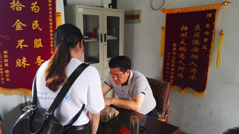 7月10日,调研团前往运河沿岸的东关街进行调查宣传。在交谈中,队员们发现,并不是每一个受访者都对古运河文化有十足的了解,更有甚者尚未听闻古运河沿岸的文化艺术形式,真正了解古运河文化的只占少数。数小时过后,调研团终于完成了调查问卷的回收。调查结果显示居民提出的观点较为片面、主观,不过这也正是居民对古运河最真切的印象。调研团还邀请古运河沿岸的居民、游客在横幅上签名,并对所进行的关于古运河保护与振兴活动进行宣传。