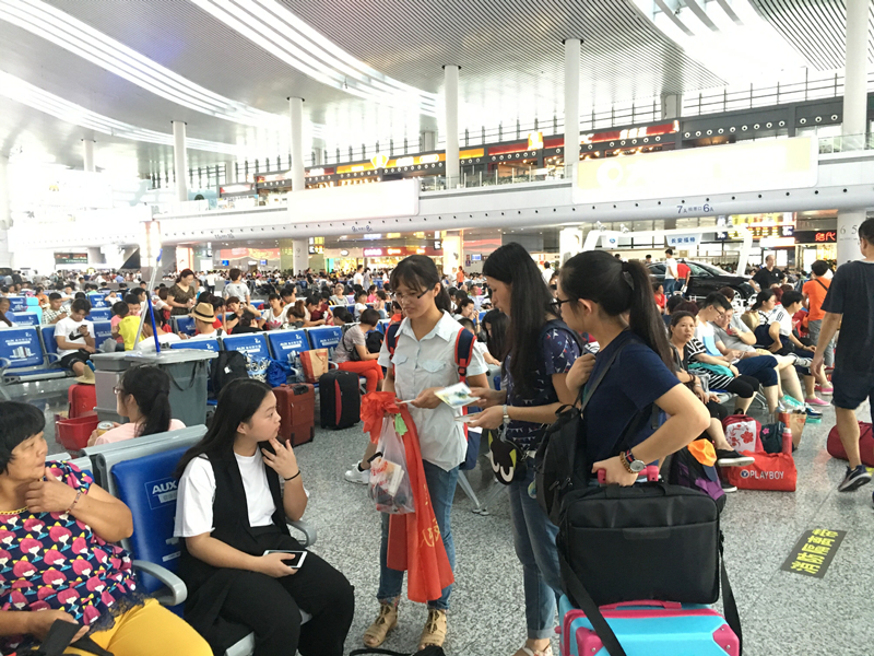 7月15日,实践团队全体前往宁波火车站附近,向民众宣传海洋海堤小知识、宣传河海百年悠悠历史。通过互动,民众了解更多的海堤海洋文化,实践团以精美的河海百年明信片、书签作为奖品,宣扬SEX8 百年水文化。