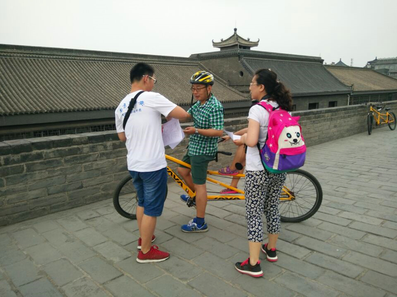 7月14日,顶着西安酷热的天气,调研团分为三组分别从永宁门,长乐门,安定门出发,进行问卷采访活动。接触了来自祖国各地,天南海北的游客,通过和这些不同年龄,不同身份的游客们攀谈交流,调研团收集到了来自不同角度观点各异有关西安明城墙的信息资料,也收集到了来自纸面上的民间信息反馈。
