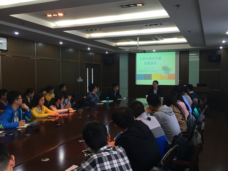 2016年10月11日下午四点,学院邀请到了港航杰出校友、中建筑港集团有限公司副总经理严震做客《港航青年说》,与同学们进行了面对面的交流,郑金海院长和13级本科生辅导员王玲老师也出席了本次座谈会。本次座谈会在严恺馆502举办,座无虚席,大家交流出奇的热烈。严总结合自身工作经历讲述专业发展和职业规划,分享工作经验和人生感悟,同时解惑答疑,为同学们提供就业和发展指导。