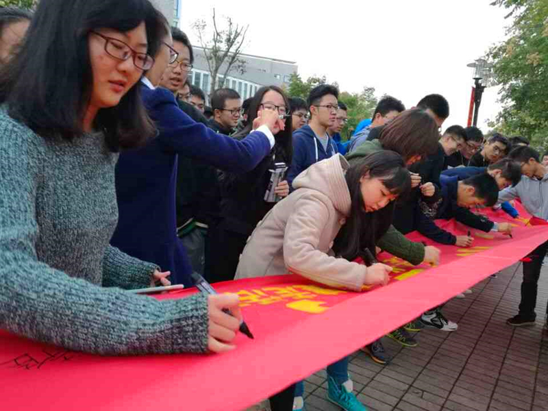 全体同学到场后,季超老师简洁介绍了酷跑活动的背景意义,希望大家能积极参与,锻炼身体。随后,同学们响应号召,依次拿着笔,在印有“奔跑吧,水之子”的横幅上签名表态,八米的横幅前面聚满了同学们,十分热闹。做完了热身活动,同学们开始正式的“酷跑”。季超老师和文体委员万文杉一起领跑,带领同学们从图书馆东侧开始,围绕图书馆逆时针奔跑一圈。同学跑的都很投入,伴着清晨清凉的风和微微晨光,用奔跑开启新一天。前半圈同学们还比较轻松地慢跑,在最后的三百米内,同学们就开始冲刺了,正好可以拉伸筋骨。结束了晨跑的同学们都微微出汗,之前还有些惺忪的睡眼彻底睁开,精神充沛,神清气爽。