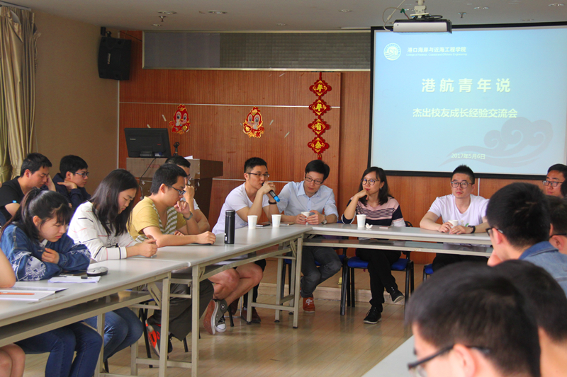 2017年5月6日上午,“港航青年说”——杰出校友成长经验交流会在严恺馆702举办,活动邀请到了2007届船海专业郑征、张运东、郑国诞、毕洪武等学长学姐就如何学习如何工作以及职场经验与2013、2014级本科生分享。