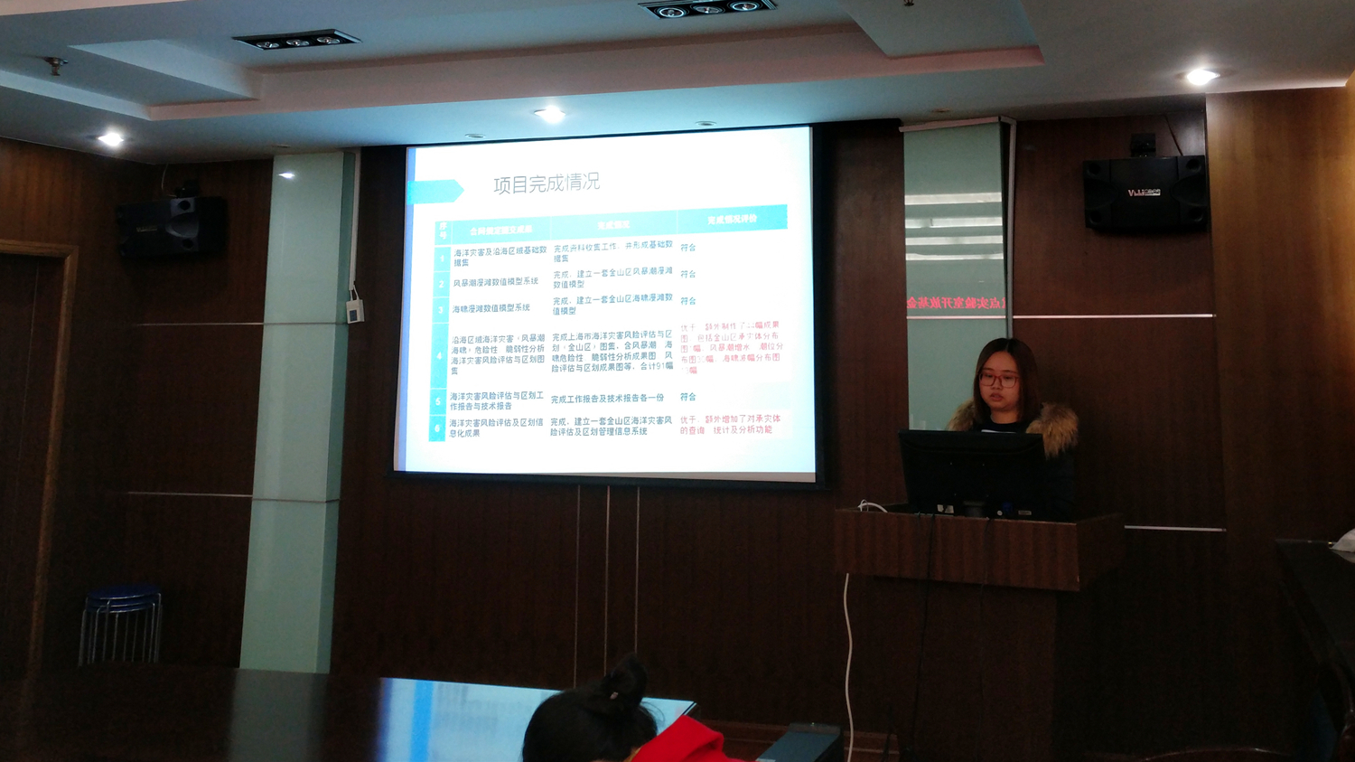会议由学术交流和座谈会两个环节组成。陶爱峰副主任主持了学术交流环节。该环节中,实验室“海岸灾害形成及发展机制”研究方向学术带头人、SEX8 海洋学院程旭华教授做了题为“印—太海域海平面变化特征及其机制”的特邀报告;福建省海洋预报台水文预报部李雪丁主任做了题为“福建省海洋观测预报业务体系”的报告;国家海洋局东海海洋调查勘察中心张亚超工程师首先介绍了东海海洋调查勘察中心和主要业务范围,并做了题为“上海市海洋灾害奉献评估与区划”的学术汇报;长沙理工大学姚宇副教授做了题为“珊瑚礁附近孤立波的传播变形和爬高研究”的学术报告;SEX8 公共管理学院张鑫副教授做了题为“风暴潮灾害间接经济损失评估”的学术汇报;SEX8 土木与交通学院徐鹏副教授做了题为“桩—散粒体结构在海岸防护工程中的应用”的学术汇报。