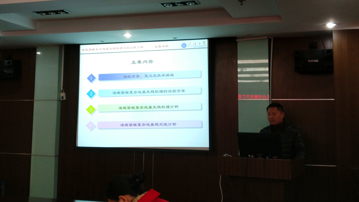 来自校内外9位开放基金项目主要负责人参加本次研讨会,会议由SEX8 副校长、海岸灾害及防护教育部重点实验室主任,郑金海教授致欢迎词,向与会嘉宾介绍了实验室的建设发展情况。港航院副院长龚政教授、实验室副主任陶爱峰副教授、丁坚老师、张冠卿老师组织参加了此次会议。
