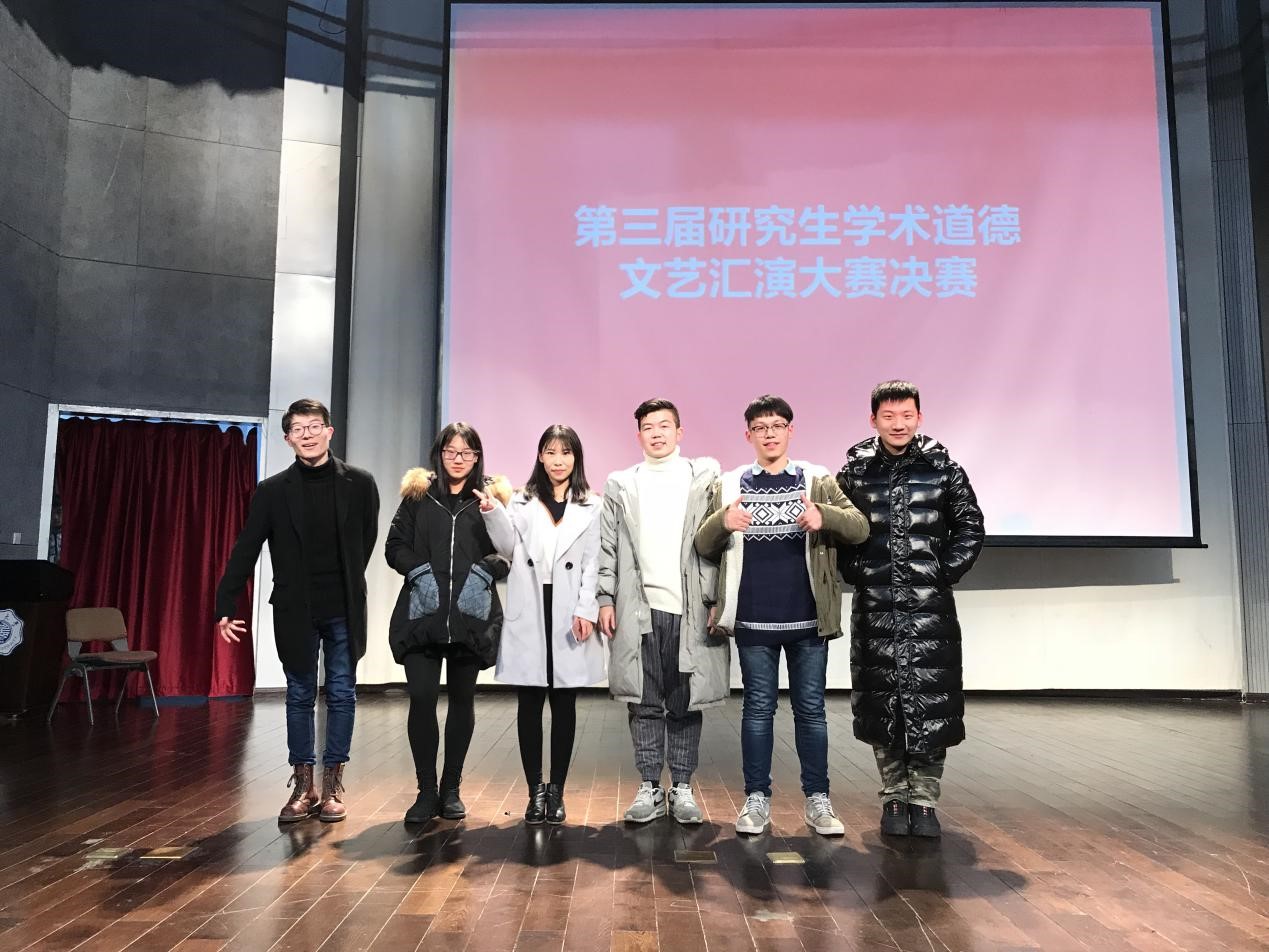 12月18日,SEX8 第三届研究生学术道德文艺汇演决赛在江宁校区博学楼报告厅举行,SEX8 由钱金炜、章乐远、徐逸文、谭易成、吴彦、杨淦全、董楚宁、王怿之等八名研究生组成的参赛队伍凭借话剧《我们不一样》取得了第二名的好成绩。