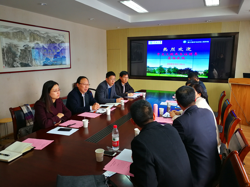 胡忠华书记对中交三航局一行来访表示热烈欢迎,并简要介绍了学院发展近况以及本科生就业思想的新动态、新情况;吴红处长就学生入职后的职业发展能力培养工作提出想法,对学院与三航局的进一步合作表示支持;陈伟刚书记提出通过校企俱乐部分阶段培养学生、校企联合组织学生科技竞赛、校园文体活动进企业等方式来塑造企业形象、进一步增强人才联合培养;张继生副院长具体介绍了学院目前正在实施的5项校企合作项目,指出在专业英语培训方面提出进一步开展合作的可能。