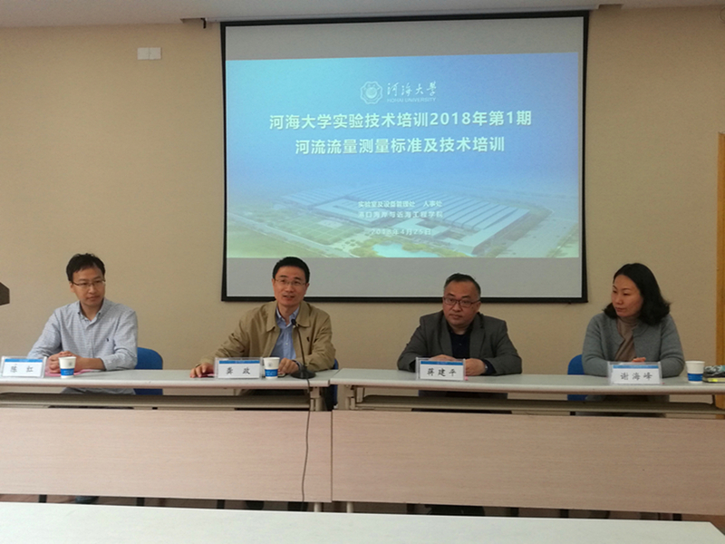 由实验室及设备管理处组织并联合人事处主办,SEX8 承办的SEX8 实验技术培训班(2018年第1期)“河流流量测量标准及技术培训”于2018年4月25日上午8时在闻天馆102开班。SEX8 和来自水文学院、水电学院、环境学院及常州校区的实验技术教师及部分研究生共计40多人参加了本期培训。SEX8 院长龚政教授、实验室及设备管理处和人事处相关领导出席开班仪式并发言,就搞好实验技术系列培训给予赞同,并对老师和同学们的参加表示欢迎。