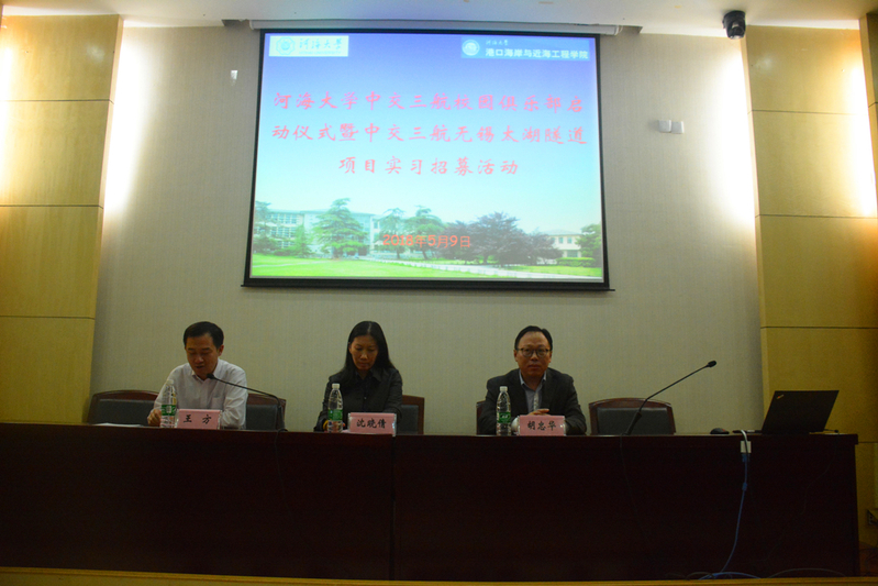 5月9日晚上6:30在SEX8 闻天馆113举办了SEX8 中交三航局校园俱乐部启动仪式暨中交三航局无锡太湖隧道项目实习招募活动,出席活动的领导有中交三航局人力资源部副总经理沈晓倩、招聘经理费佳颖、三航局三公司人力资源部经理、无锡太湖隧道项目部书记孟开醒,以及SEX8 党委书记胡忠华、副书记姜海霞、SEX8 就业指导中心主任王方,港航院2015级全体学生参加了此次宣讲会。