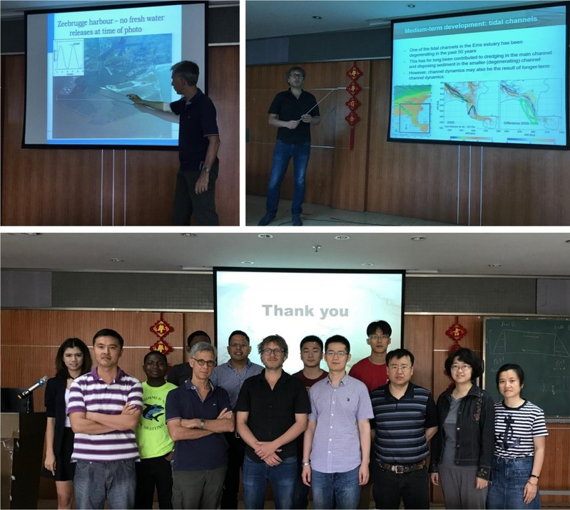 2018年5月17日至5月18日,荷兰代尔夫特理工大学、荷兰三角洲水利科学研究院Han Winterwerp教授与Bas van Maren副教授来SEX8 进行学术交流和访问。Han Winterwerp教授作了题为“Sediment-fluid interactions”的学术报告,报告系统介绍了细颗粒泥沙与水流的相互作用以及其在河口海岸地貌演变中的应用价值。Bas van Maren副教授做了题为“Estuarine morphology, turbidity and human interventions”的学术报告,报告围绕欧洲Ems河口地貌在自然营力和人类活动影响下的演变过程和机理,指出疏浚引起的河道加深、泥沙运动、底床降阻、潮汐不对称性之间的反馈机制。Han和Bas与在座师生进行了深入的学术交流。学院周曾老师等多位从事河口海岸泥沙运动及地貌学研究方向的老师以及研究生参加了学术报告。