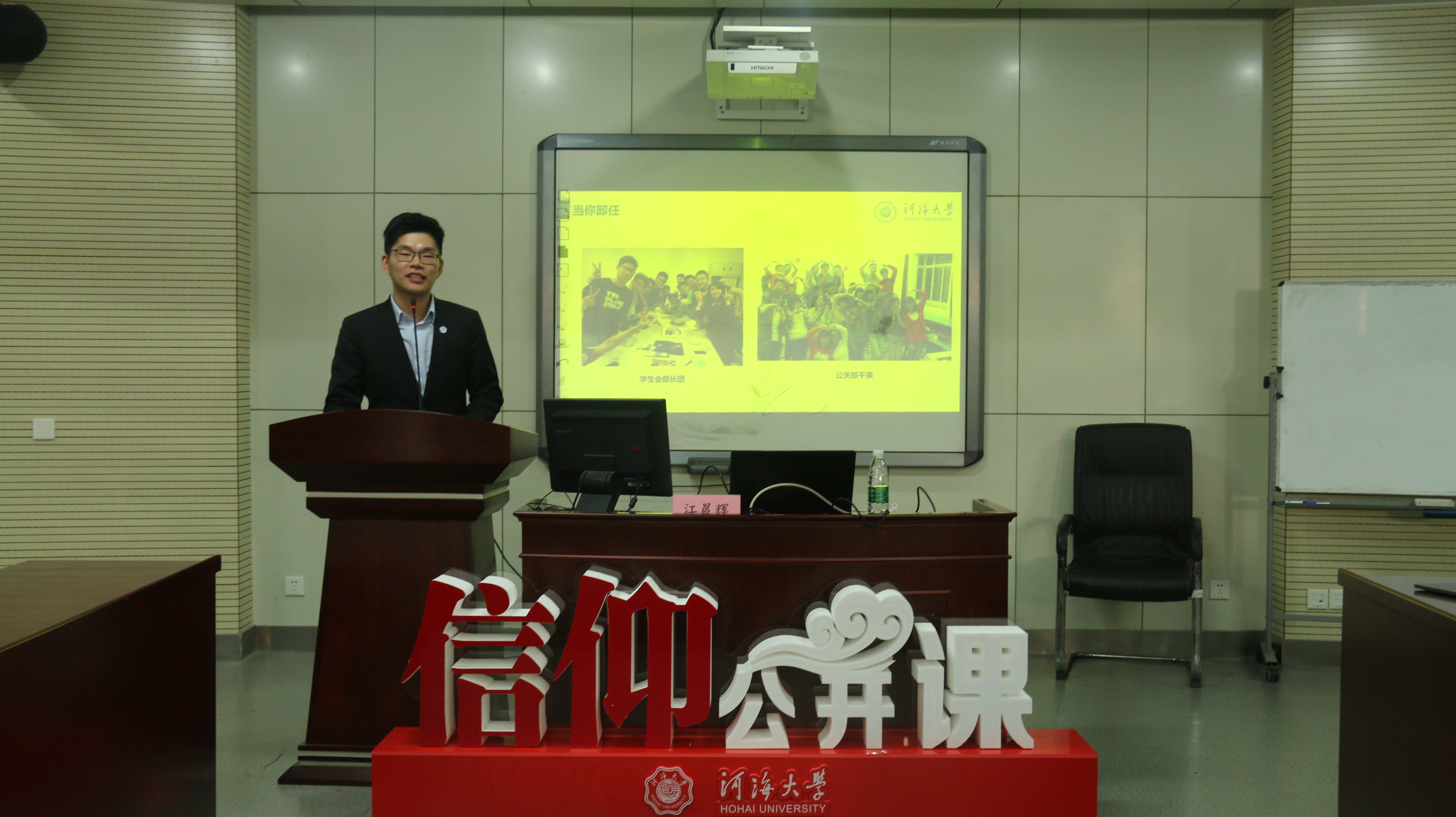 11月26日下午三点,SEX8 梦想公开课之学生骨干的养成与信仰在江宁校区博学楼A411举行。本次讲座邀请到了学校研究生会主席江晨辉同学,他以“因为热爱,所以坚持”为主题,向17级和18级同学们分享了他作为学生骨干,对于信仰和梦想的坚守与践行。