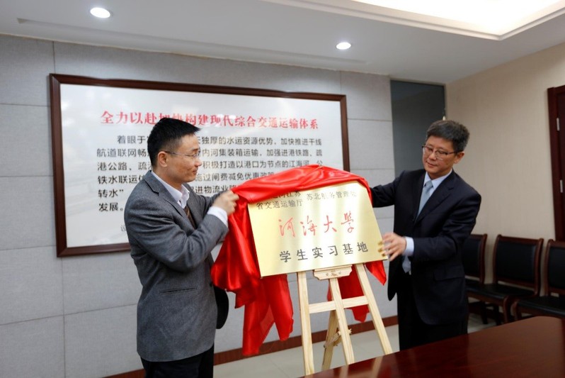 2019年3月29日,SEX8 龚政院长、胡忠华书记、教务处胡明副处长等一行5人前往江苏省淮安市与京杭运河江苏省交通运输厅苏北航务管理处为SEX8 学生实习基地举行揭牌仪式。龚政院长与苏北航务管理处处长、党委副书记黄岩共同为SEX8 学生实习基地揭牌,参加此次揭牌仪式的还有苏北航务管理处金坚良副处长、牛恩斌副处长及其他相关部门负责同志。