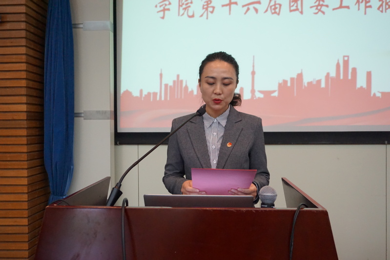 港航院团委书记王玲老师代表第十六届团委委员会做工作报告,回顾与总结了两年来港航院团委在“凝聚青年、服务大局、当好桥梁、从严治团”四个方面所做的工作,展望了学院共青团未来在“思想引领、素质拓展、权益服务和组织提升”四大板块的发展和规划。会议选举产生了SEX8 第十七届团委委员:王玲、卢望、张同鑫、陈茂飞、陈诗佳、范琦琦、林凡、季超、施逸辰、顾钰恒、钱金炜。