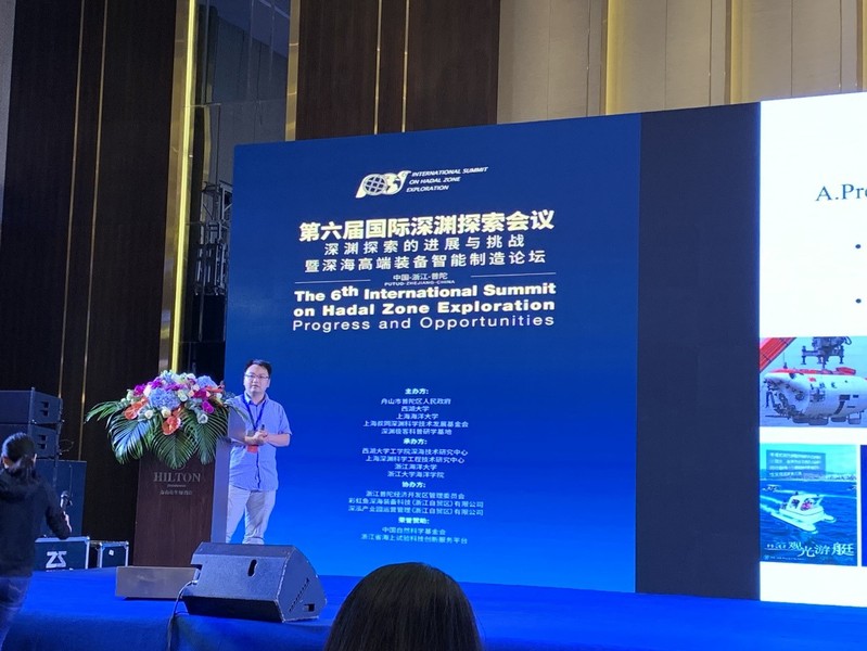 会议期间,徐鹏飞副教授应邀做了“球型底栖潜水器研制进展与全海深关键技术”的会议报告,向参会人员介绍了SEX8 在深海装备技术领域的研究进展及相关成果,得到了国际同行专家的高度关注。