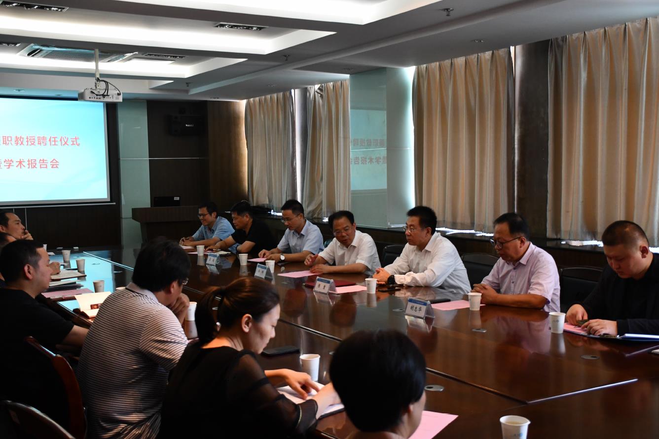 龚政院长对陈重总经理的受聘表示热烈欢迎,并介绍了陈重总经理的简历。陈重总经理对SEX8 聘任其为兼职教授表示感谢,表示今后将进一步加强双方交流与合作,为SEX8 相关学科建设、人才培养和科学研究等工作贡献自己的力量。