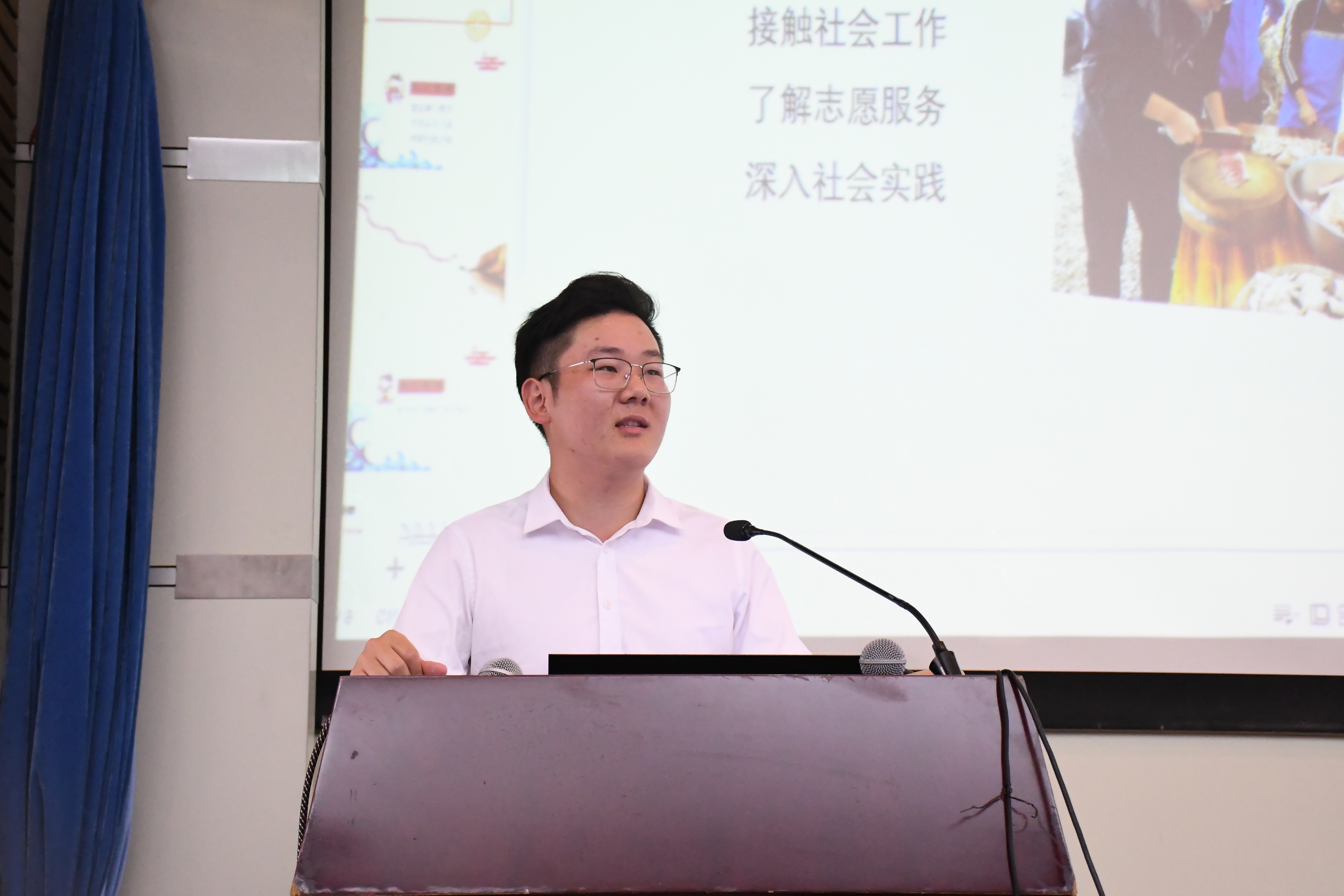 志愿服务达人高志伟强调了集体的重要性,从自己大一到大三的三年求学经历中总结经验,在强调班级凝聚力、行动的意义后,向大家提出三点建议,应尝试第二学位、第二语言;应参加文体活动,得到人无我有的能力;应注重社交能力的培养,提升社会认知,学习之余也应关注社会工作。他强调,工作态度比能力更重要,无论什么时候都要有不喜欢也应尽力做、不会就学的态度。