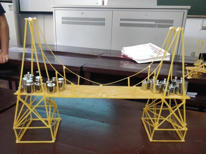 本次比赛响应全国科普日的号召,采用平常的意面和胶水为材料,运用所学力学知识进行桥梁设计。经过前期宣传、个人报名,最终共有11组符合条件的作品参与评比。