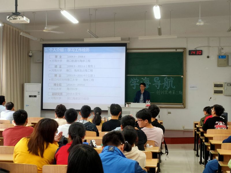 2019年10月12日下午两点,港航院创训宣讲团第三期在SEX8 江宁校区博学楼B507举行,本次宣讲会邀请苏敏,姚鹏和卢向雨老师作为宣讲嘉宾,他们就自己的教学经历、研究方向、预备创训课题与参与创训的要求等方面做了详细介绍。