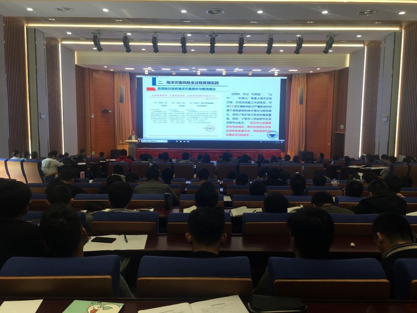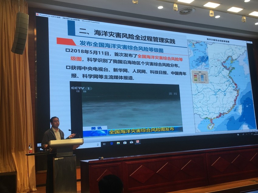 2019年10月18日上午,海岸灾害及防护教育部重点实验室系列特邀学术报告会在SEX8 科学会堂3楼举行。自然资源部海洋减灾中心王斌主任受邀做了题为“海洋灾害风险全过程管理的实践探索”的学术报告。