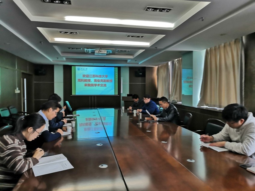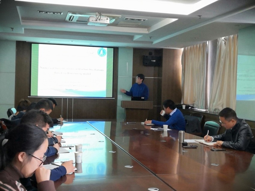 2019年11月12日上午,江苏科技大学周利教授、高俊亮副教授来SEX8 进行学术交流。周利教授做了“极地船舶与海洋工程冰载荷预报”学术报告,高俊亮副教授做了“基于Boussinesq模型诱发的港湾共振数值研究”学术报告。龚政院长主持本次报告会。