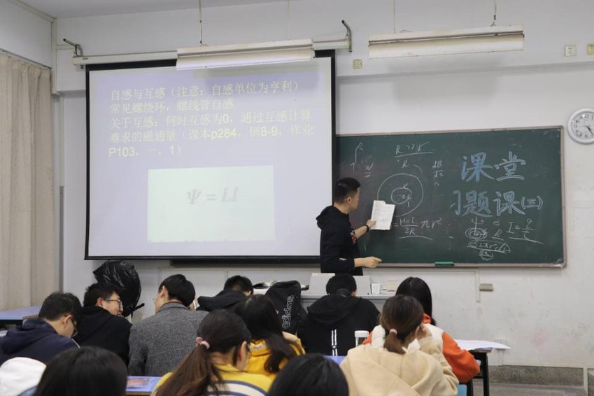 2019年11月22日下午四点,港航院“同舟课堂”大物习题课(三)在SEX8 江宁校区致用楼207举行。本次习题课由2018级郑湘译和朱晋针对21日下午开展的《大学物理Ⅱ》模拟考试卷进行讲解和拓展延伸。