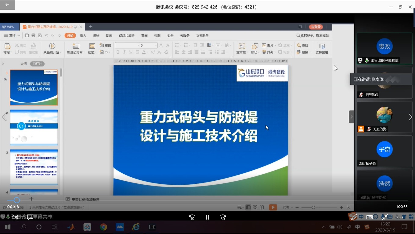 根据教育部、省教育厅关于新冠肺炎疫情防控工作要求,SEX8 疫情防控期间将2020届本科毕业实习从线下实习调整为线上实习。港口海岸近海工程学院根据学校总体布置,结合学院自身特点,学院制定出详细的线上毕业实习方案。邀请行业内具有丰富工程实践经验的专家,从港口工程、海岸工程和航道工程的规划、设计和施工为本科毕业生开展了为期4天共八场的讲座(表1)。