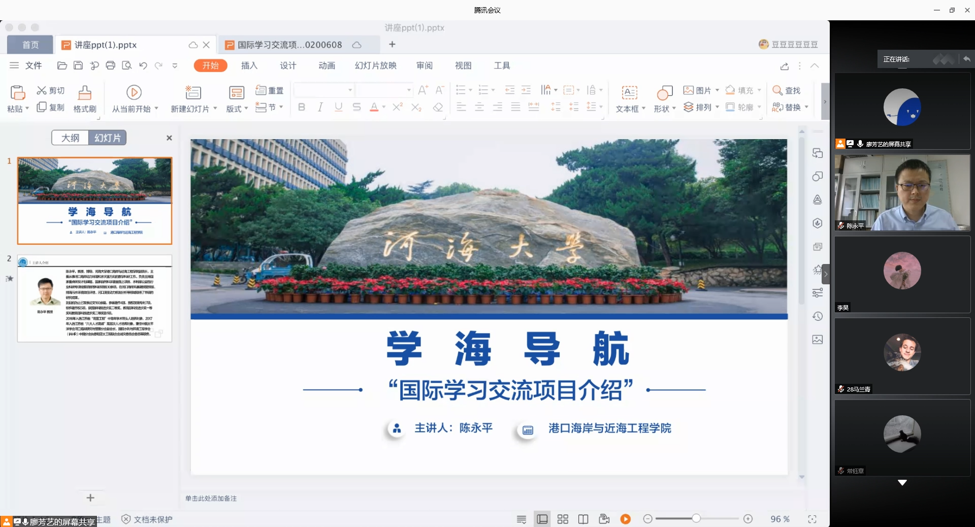2020年6月8日上午十点,港航院邀请学院陈永平副院长和国际交流学院胡宁宁老师为2019级本科生做“国际学习交流项目介绍”专题讲座。