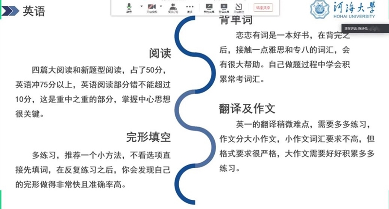 2020年6月18日晚六点半,港航院通过线上会议的形式面向17级本科生举办了“优秀毕业生经验分享会”,邀请到5名优秀的港航院16级本科生进行经验分享。