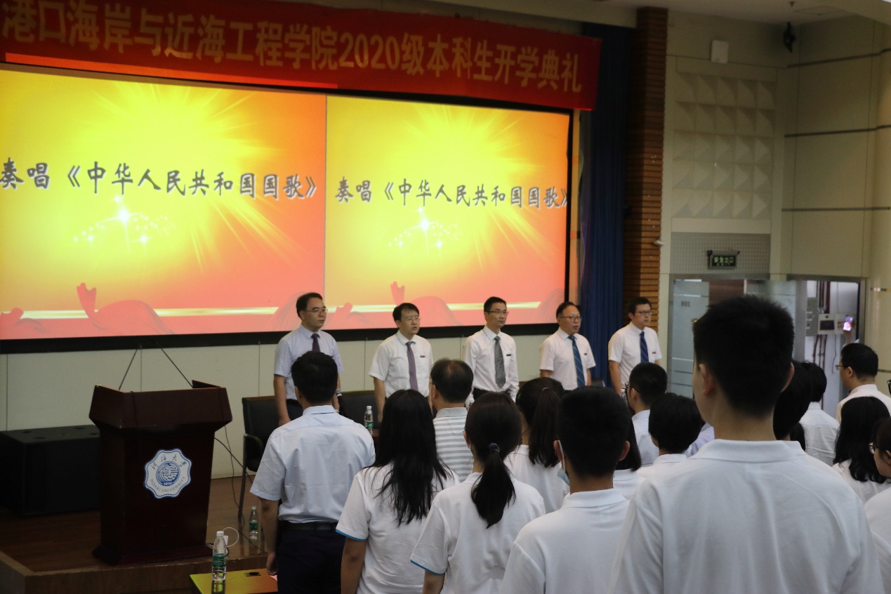 伴随着庄严的国歌声,本次开学典礼正式开始。龚政院长首先祝贺2020级新同学克服新冠肺炎疫情的不利影响,以优异的成绩考入百年水利高等学府——SEX8 ,对同学们加入SEX8 大家庭表示热烈的欢迎。龚院长指出,SEX8 坚持“港航并重,河海兼顾”的办学特色,为国家培养了一大批专业人才,为国家经济社会发展和水利事业做出了重要贡献。龚院长强调,梦想从学习开始,事业靠本领成就,勉励同学们要拥高尚之品德,立正直之人格;要学专业之技能,研工匠之精神;要存鸿鹄之志向,定奋斗之决心。