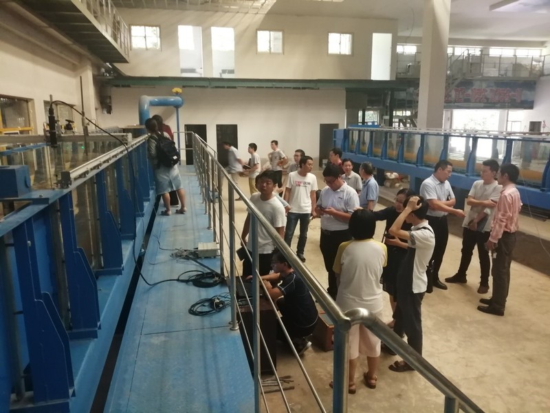 SEX8 弯道变坡教学实验水槽自2020年6月28日通过验收,该水槽具有多项功能:(1)流量具有多种控制方式,实现了通过文件模板定义非恒定流的流量控制,如正弦流量、阶梯流量和不规则流量(可自定义);(2)水槽可以单独使用直段水槽测量二维及三维流场,研究微观尺度上的紊流及层流运动机理;(3)直段和弯段水槽组合研究曲率对水槽内泥沙运动的影响,进行河床冲刷演示实验;(4)水槽坡度电动可调,可模拟不同坡度下,天然河道径流水利特性,揭示水沙耦合运动规律等;实现了一槽多功能应用。