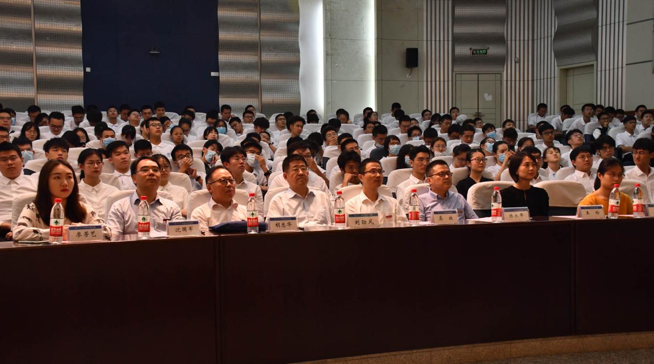 9月15日下午,SEX8 2019-2020学年优秀学生颁奖典礼在江宁会议中心二楼报告厅举行。特邀嘉宾中国港湾工程有限公司人力资源部刘劲风副总经理、SEX8 院长龚政、院党委书记胡忠华、副院长陈永平、副书记沈国军出席颁奖典礼。受表彰学生代表和2020级全体本科生参加典礼。