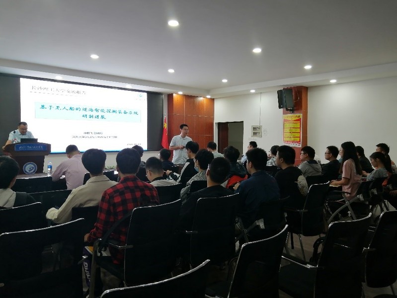 调研期间,徐鹏飞所长为长沙理工大学船舶与海洋工程专业本科生做了题为“基于无人船的近海智能探测装备系统研制进展”的报告。SEX8 教师一行考察了船舶与海洋工程实验中心、港口海岸与近海工程实验中心等相关科研实验平台,包括船模拖曳水槽、综合港池、波浪水槽等重要设施条件。此次调研交流进一步加深了SEX8 与长沙理工大学水利工程学院船舶与海洋工程学科专业的合作关系,对SEX8 船舶与海洋工程学科专业建设具有良好的促进作用。