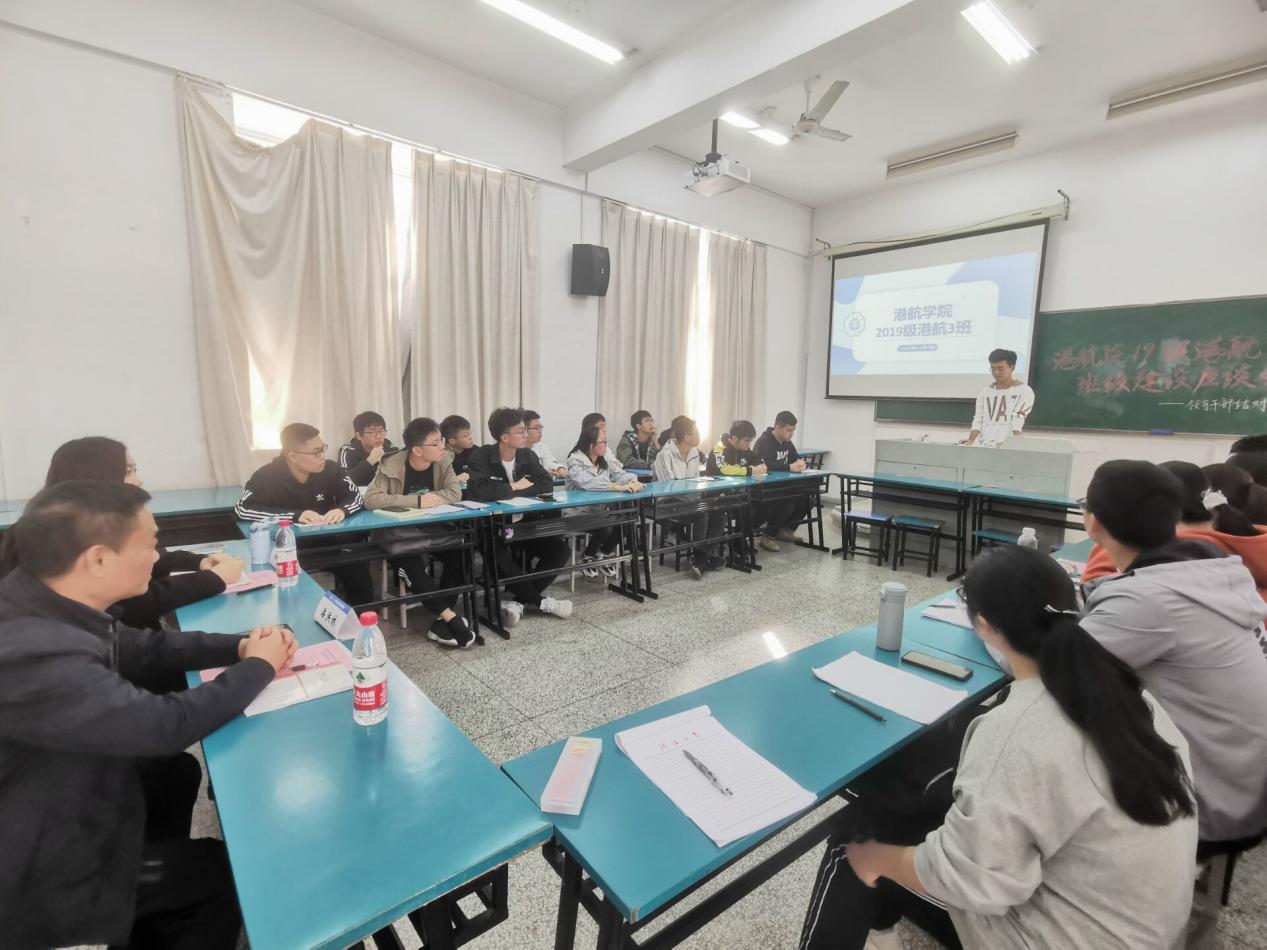 2020年11月3日下午14时,2019级港航3班于江宁校区致高楼A107开展班级建设主题座谈会。社科处处长、社会科学研究院院长潘洪林老师、2019级本科生辅导员廖芳艺老师、2019级港航3班全体同学出席活动。