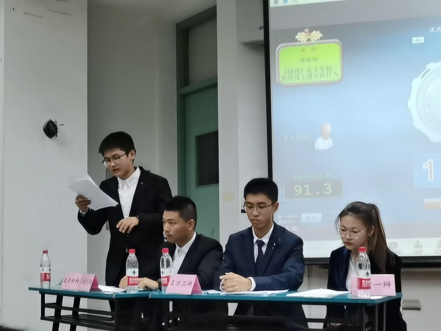 一辩——徐阳 二辩——邹鹏飞 三辩——李卓文 四辩——袁雨葳