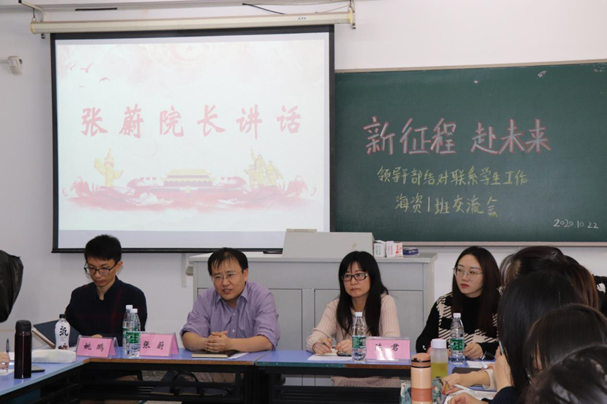 在班委汇报结束后,张院长就海资的第一学年情况与班级同学展开交流,提出大学生应在保证学业成绩的前提下培养自身的综合能力。陈所长就专业特色与专业发展方向两方面详细介绍了“认识实习”课程的具体安排,同时还为班级同学指明了海资专业的就业方向。