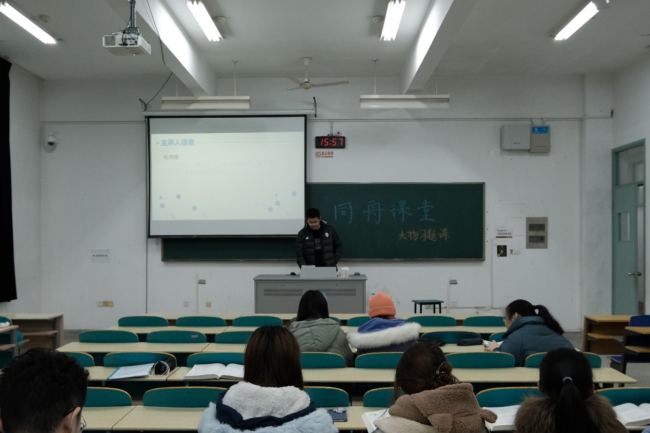 2020128日,港航院“同舟课堂”之大学物理习题课在江宁校区致高楼B104顺利举行。本次活动的主讲人是港航院2019级唐梓淇和杜雨昂两位同学,他们分别就恒定磁场和电磁感应的一系列问题向同学们做了详细的解说。