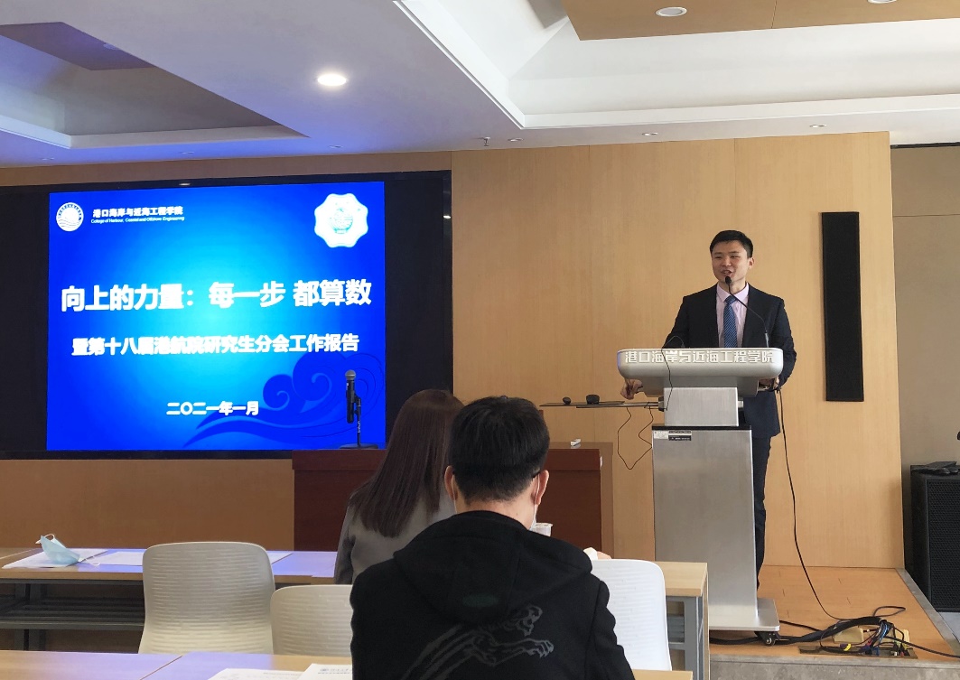2020-2021届研究生会年终述职大会在严恺馆702会议室举行。港航院团委书记王玲老师、港航院第十八届研究生会全体成员以及港航院各级研究生代表出席会议。港航院研究生会主席团及各部门负责人分别进行述职汇报,并对工作中出现的问题进行反思总结。王玲老师对述职大会进行总结,并鼓励研会成员保持旺盛的斗志与热情,自觉接受监督,进一步将目标与责任落实到位,及时总结经验与不足,推动部门工作高效运行,更好地服务学生成长成才。