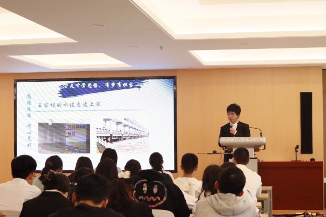 陈家骥同学分享了假期返回家乡安徽王家坝进行社会实践的经历,展示了王家坝在两次洪水中的重要作用及王家坝在政策支持和几代人努力下脱贫的故事,展现了“王家坝精神”的风采。