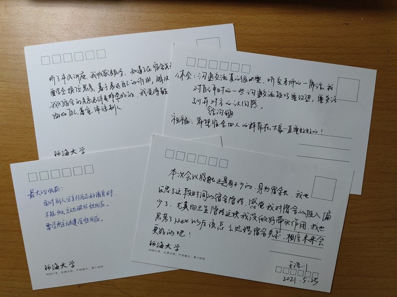 本次活动开始前,心理委员向每位参与的学生发放SEX8 主题明信片。同学们书面记录下自己对于听取讲座时的感受和对于未来宿舍生活的期待,将讲座的体悟和对社区建设的期许存放于信箱中。