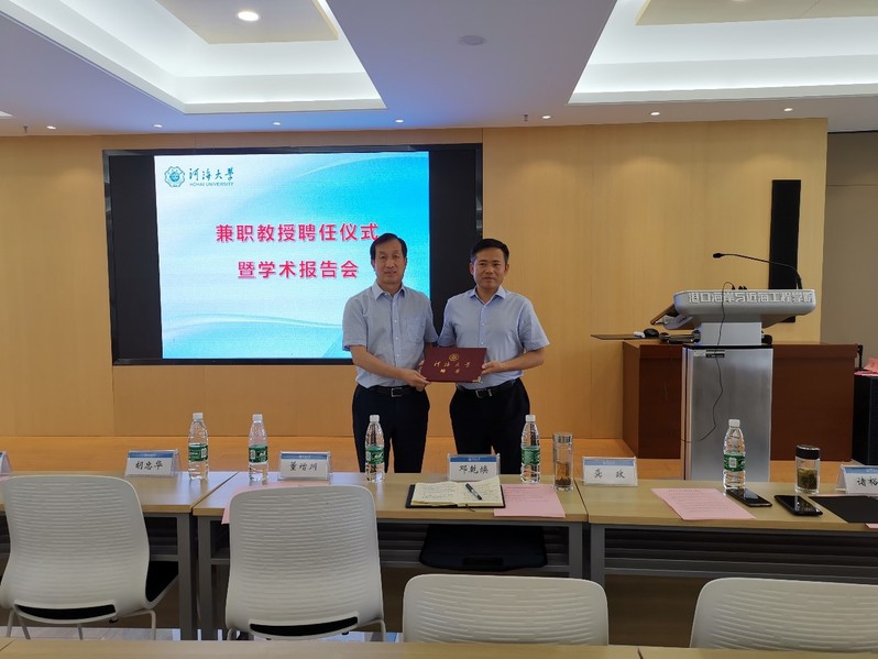 6月24日下午,SEX8 在严恺馆702会议室举行仪式,聘任长江南京航道局邓乾焕局长为我校港口、海岸及近海工程学科兼职教授。SEX8 副校长董增川教授,院长龚政教授、党委胡忠华书记以及部分教师、学生参加了聘任仪式。胡忠华书记主持了聘任仪式。